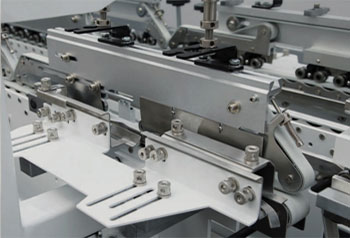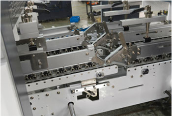 進(jin)紙部送出的紙闆(pan)經糾邊部糾偏導(dǎo)正,..輸送精度。上壓(ya)驅動壓力可上下(xia)調節,以适應不同(tóng)紙闆厚度